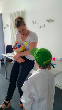 >>> With heart and mind: During the Long Night of Science, Hanna Zwaka vividly explains to young visitors how the brain works, and she also researches with her research group how sleep deprivation affects processes in the brain.
